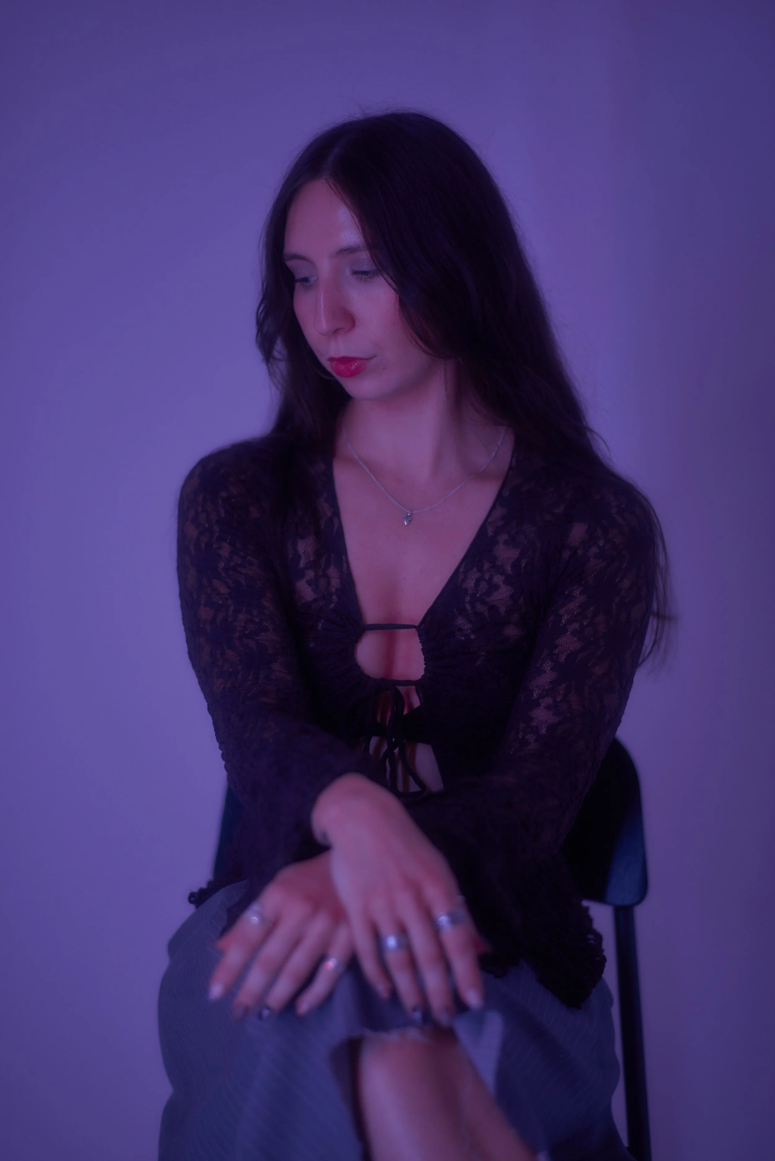 Unprocessed RAW from a Nikon d800 - Zeiss Planar 85mm f1.4 + Tiffen ¼ black mist filter - Lit with a £30 LED strip in Cove One Studios.