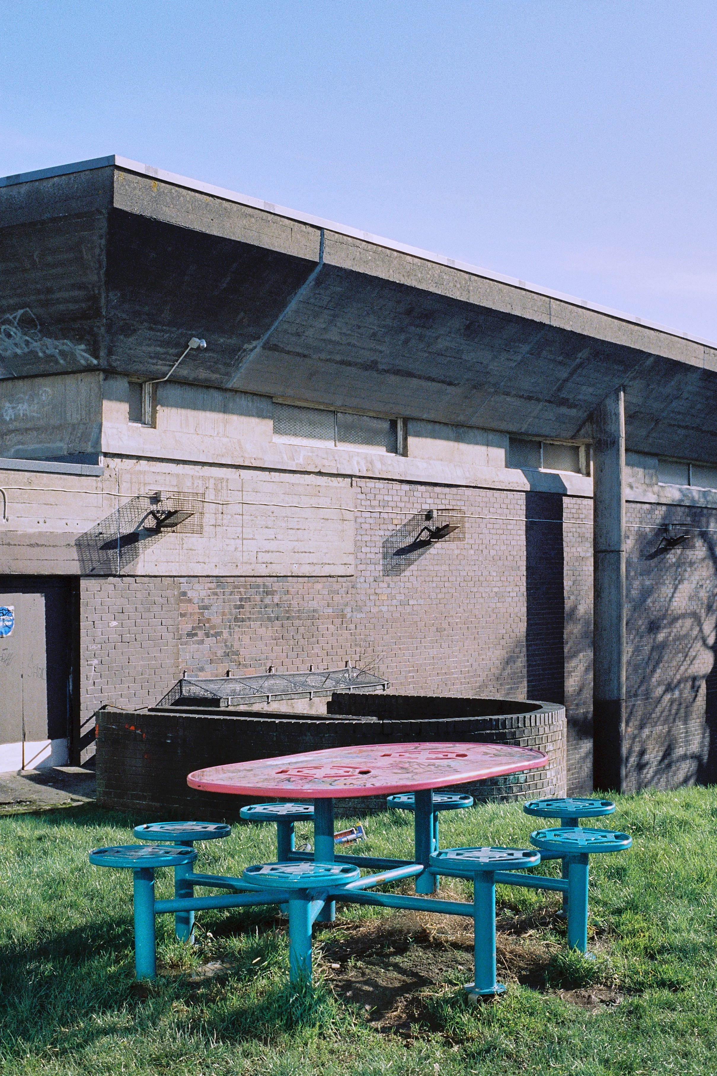 I like the bright colours of the skate park picnic table versus the brutalist back wall of Universal Connections, a youth, family and community learning service. As you can see they have abolished the tiny windows, abolishing windows now seems standard in central scotland.