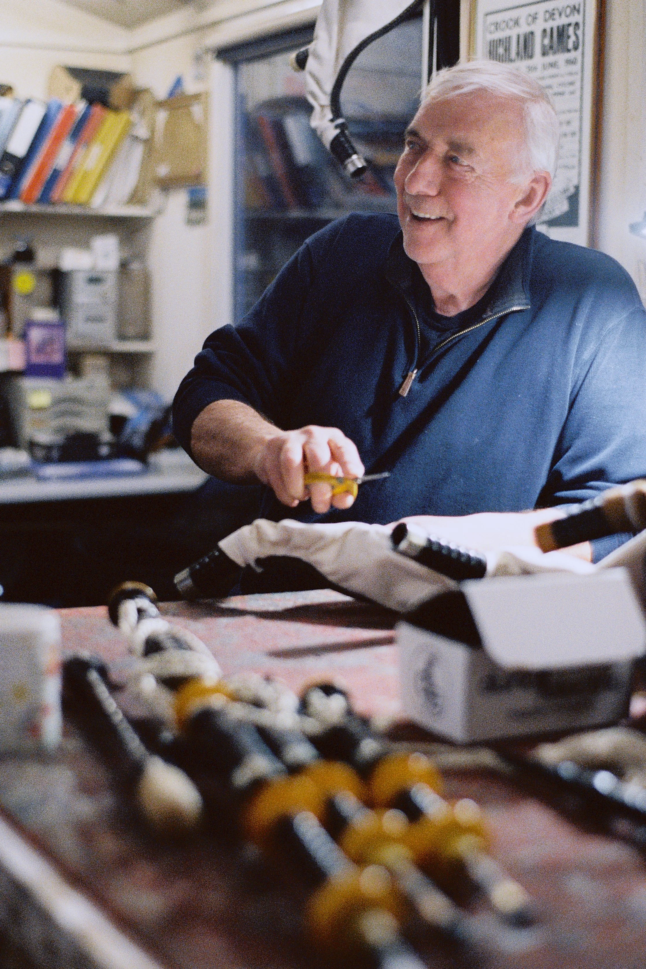 Ross Ainslie took me on a bagpipe mission on the border of Perthshire and Fife. This is Lawrence (airtight) Thomson, bag man to the stars. Seriously skilled guy and what a fckng card. We had a lot of laughs, made him fluff a few knots with our nonsense.