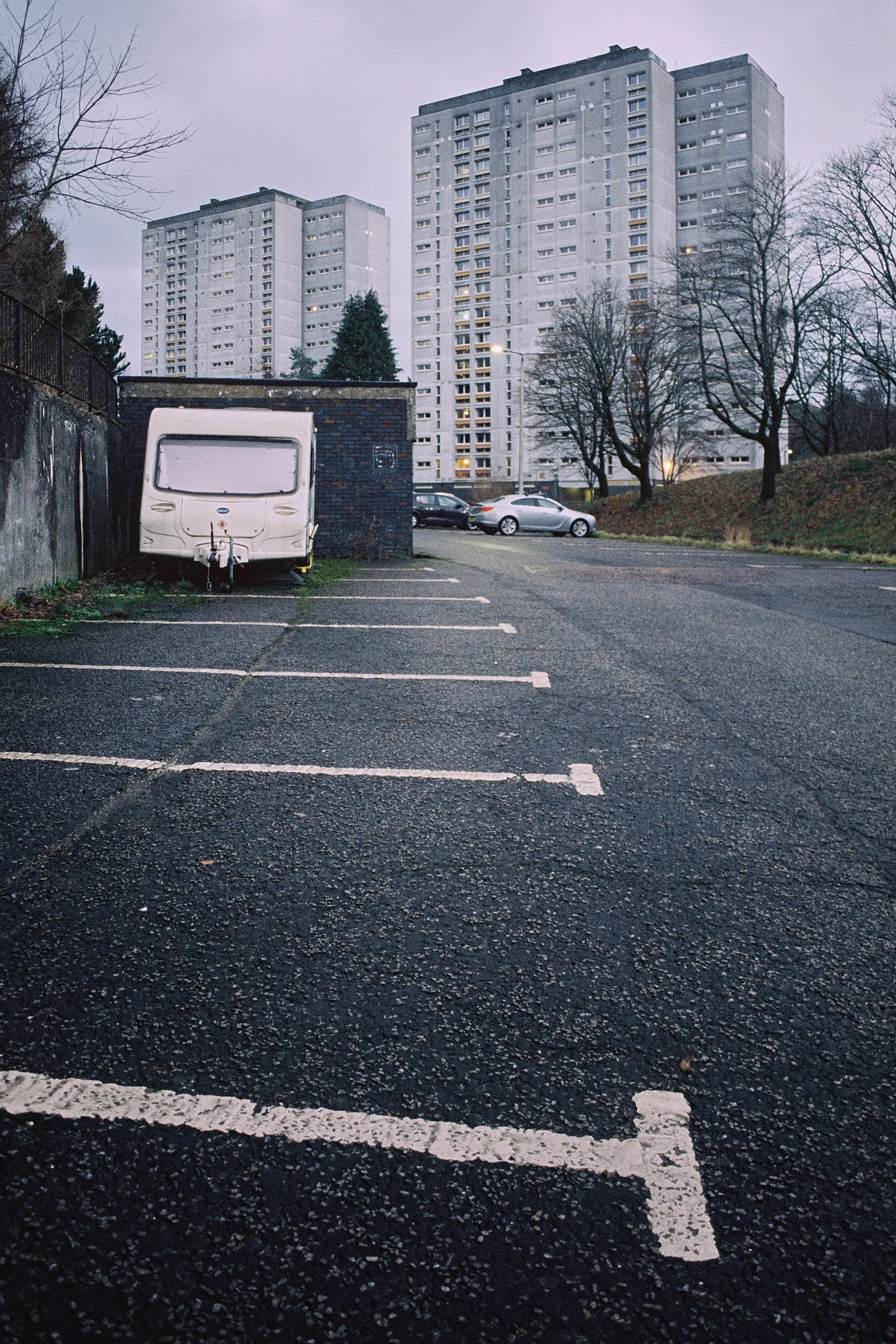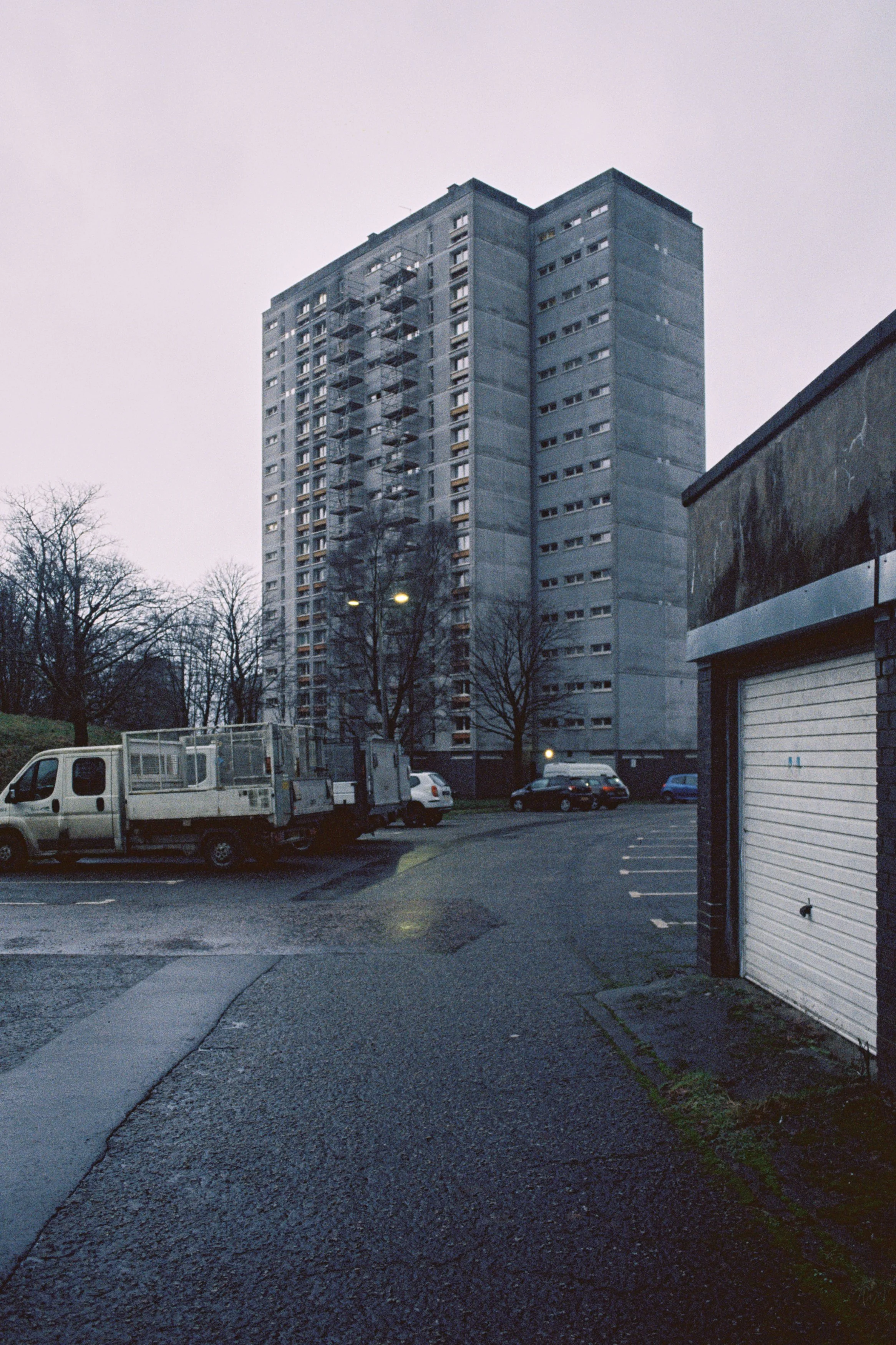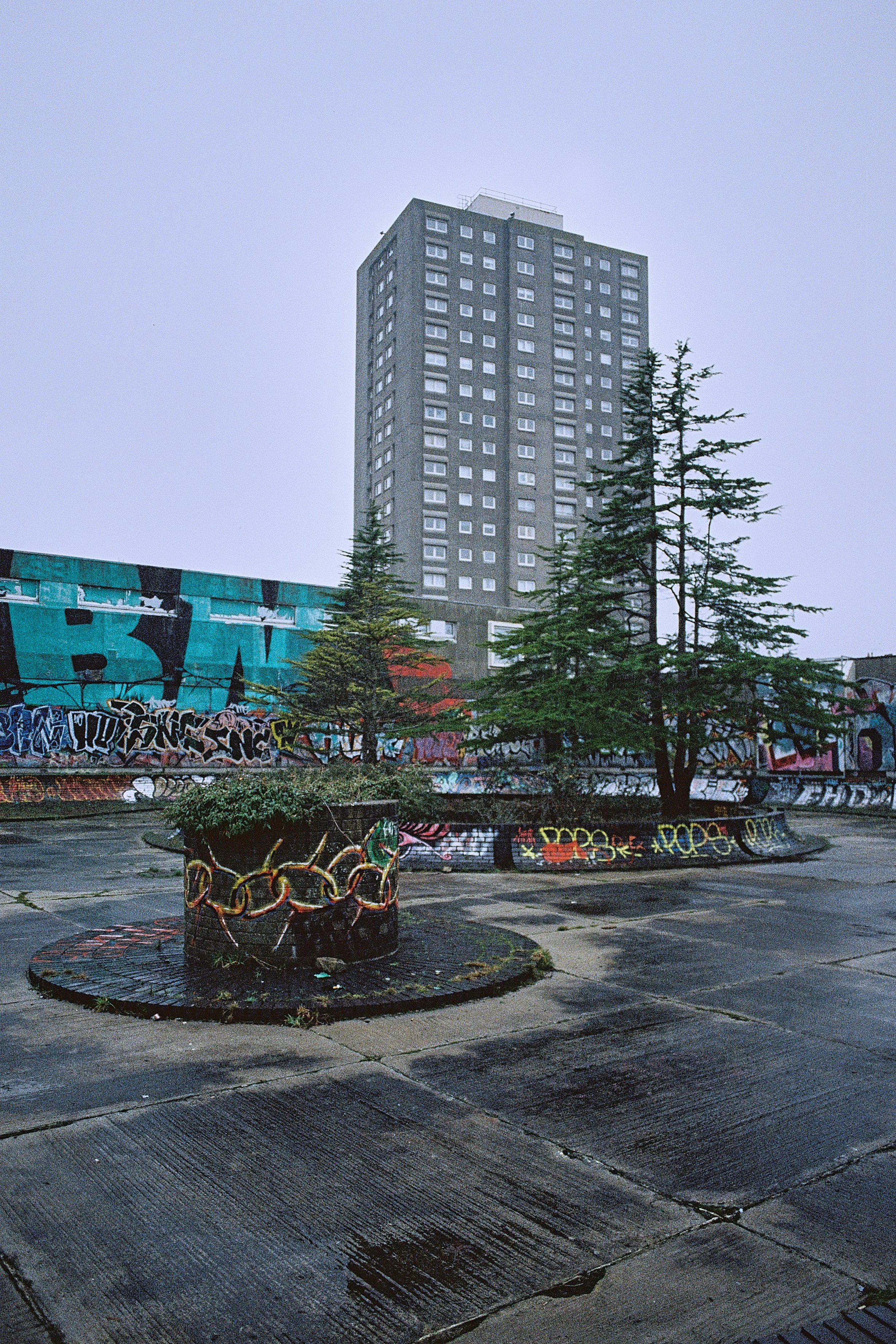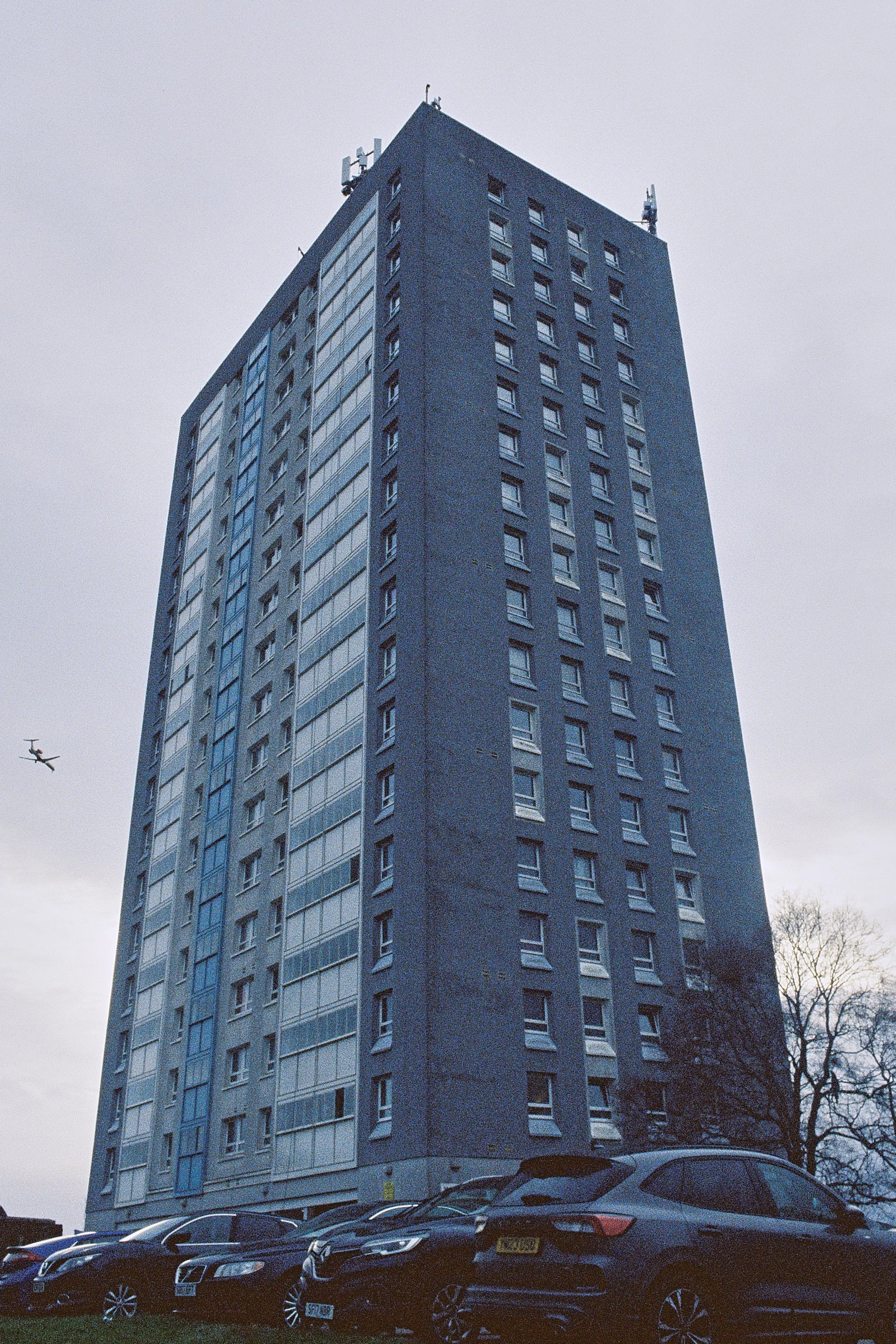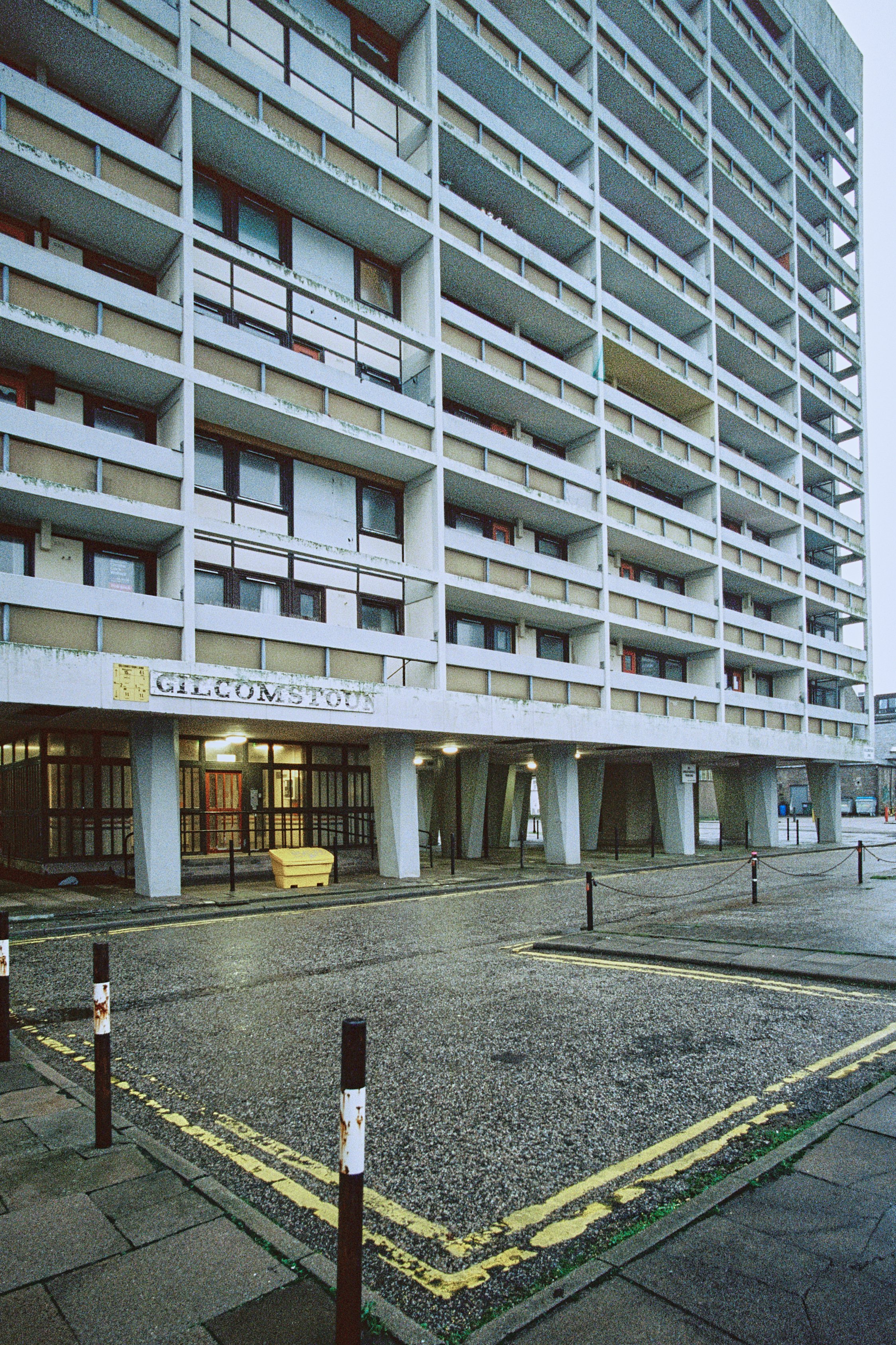 Clearly a film that has been used to create visual masterpieces like , Fightclub, Dunkirk, Interstellar, The Brutalist and most of Quentin Tarantino's output is compelling. Not only is the film visually flexible, it’s sensitivity and exposure latitude means it is an incredibly practical film that can be used handheld in near darkness. In this series I have pushed the film one stop to 1000iso which has increased the grain and crushed the shadows, though i will know better how to utilise it once my next roll is developed as I have shot it at 500iso which will give me native results. Basically I wanted a film I could use in the Scottish winter without a tripod; I am also convinced that this format combination will give perfect results for capturing Cumbernauld with the cinematic grit it so richly deserves.