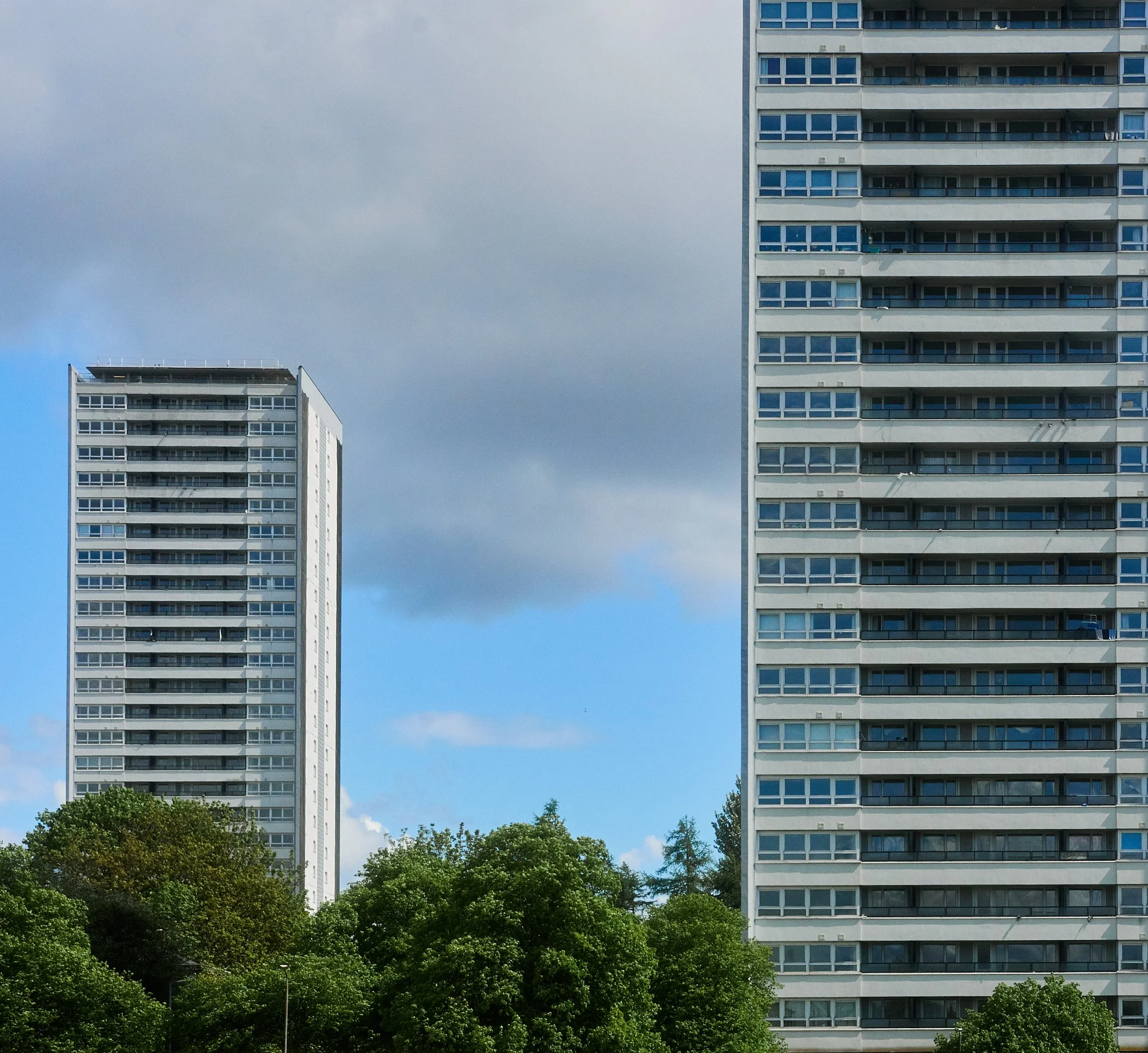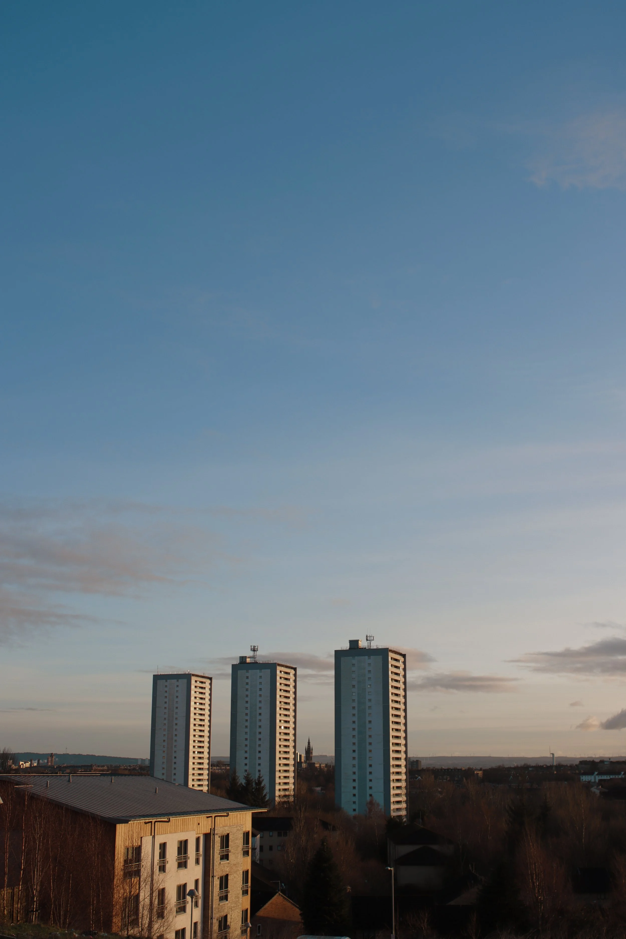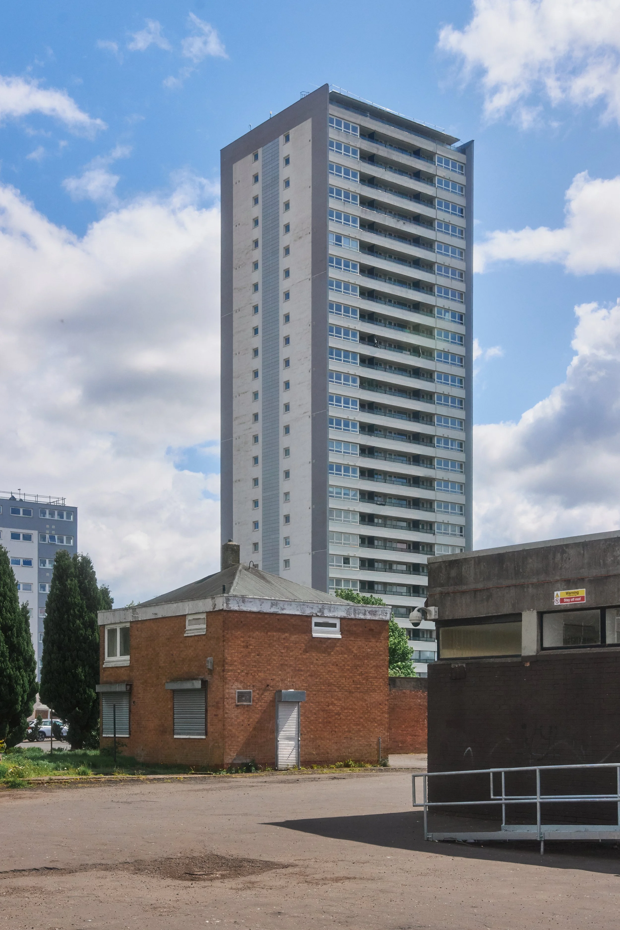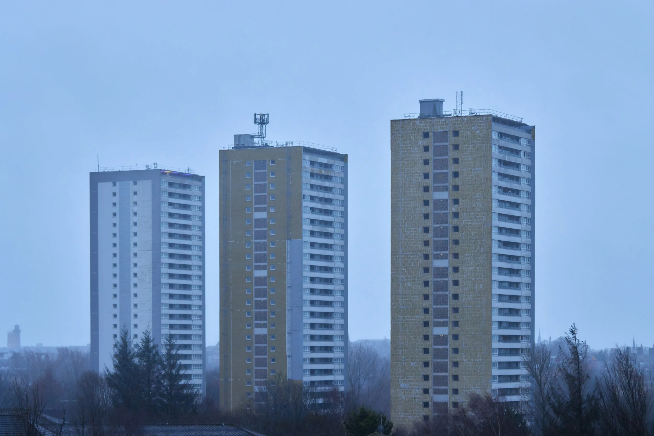 I wrote this short synopsis for this photo as I entered it into a competition … “The tower blocks of Glasgow been marred with a reputation of vice, isolation and unemployment. The architectural and societal principals of Brutalism were brimming with laudable, utopian ideals many of which never translated into reality. Many blocks have been demolished, due to endemic damp, shoddy building and myriad social problems. However many remain and these flats, 29 Glen Avon Road are getting slowly transformed from dark and isolated towers into bright, hi-tech buildings fit for the 21st century. Maryhill housing association is to install high speed fibre optic internet in the towers and is providing ‘digital inclusion’ lessons for residents. The cynic in me reckons the Bams will just get into crypto. More importantly they are replacing the ineffective and inefficient electric storage heaters and have three proposals for rearranging the layout of buildings and parking on the ground. It remains to be seen whether or not these proposals will actually improve reality for the tenants or will indeed be carried out in full. “